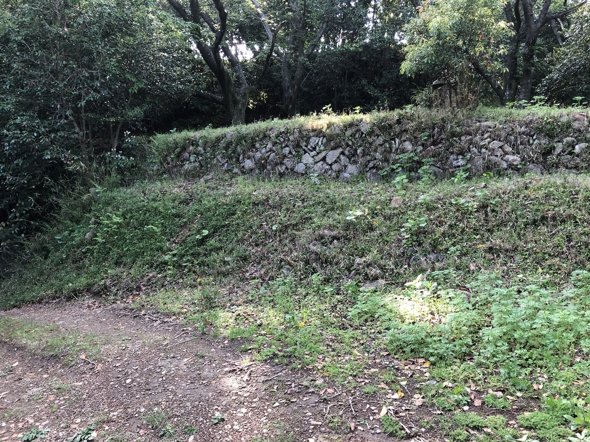 郭をとり囲んでいた石積が残っている。
